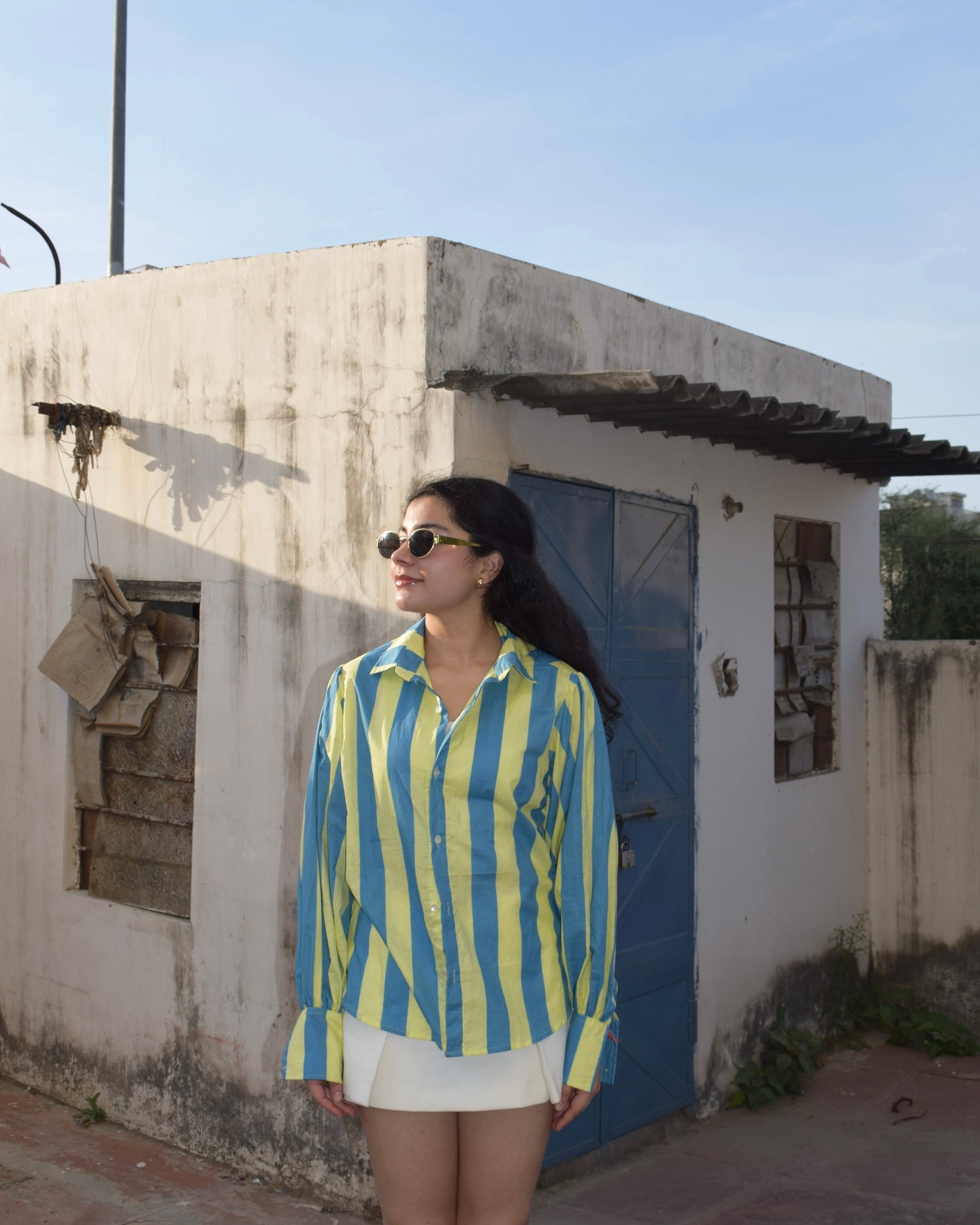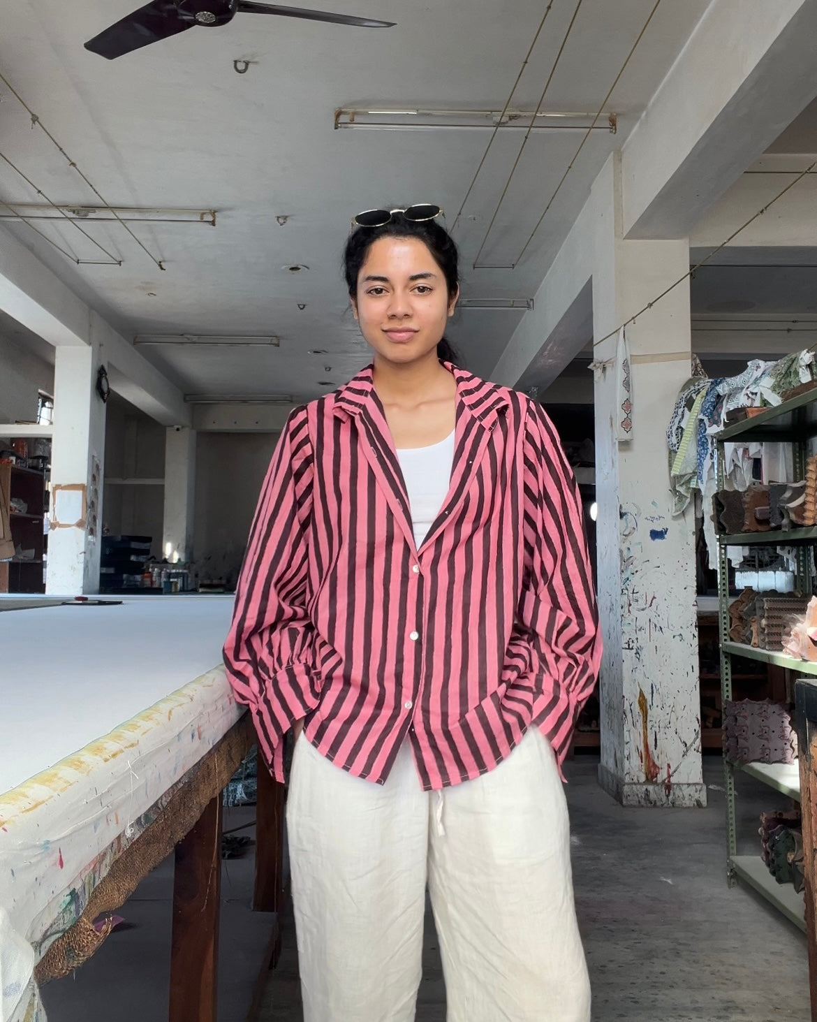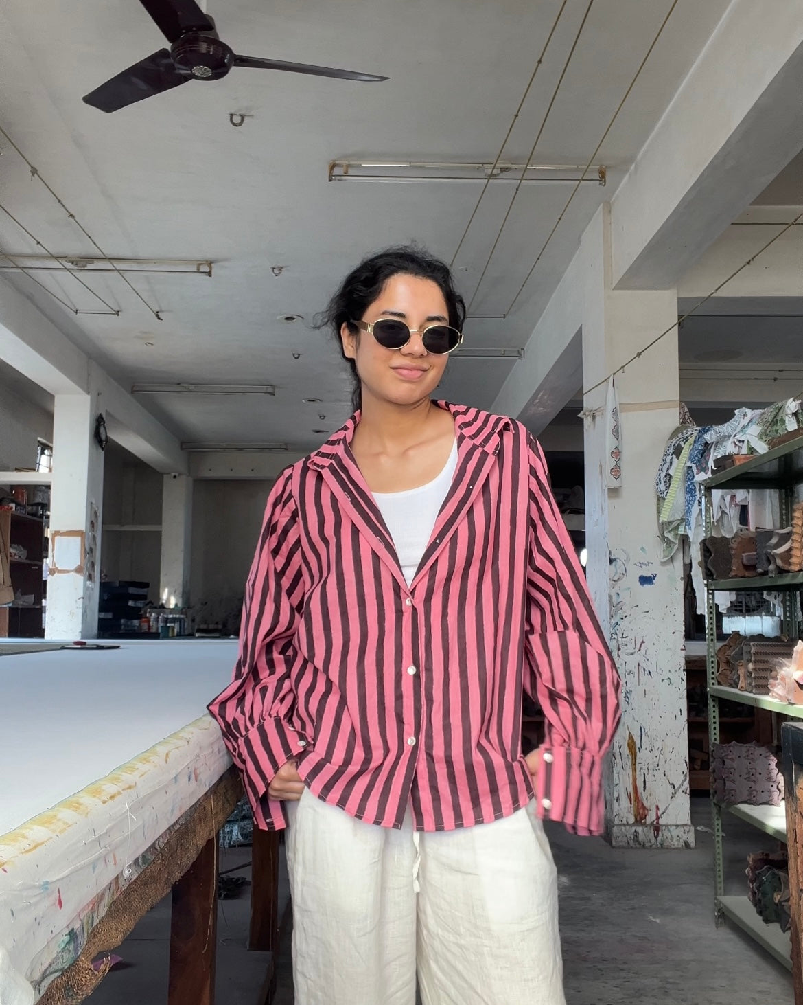 Stripes puff sleeve shirt